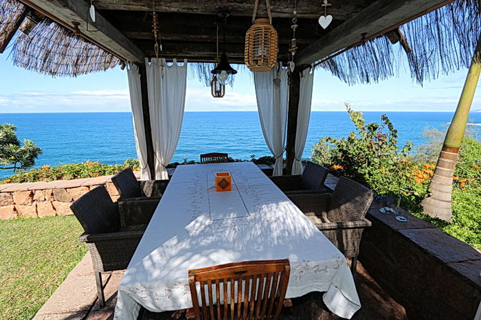 Terrassen zum sitzen und sonnen hat man hier rund um das Haus und einen gepflegten Garten mit Bananen, Orangen und Papaya.